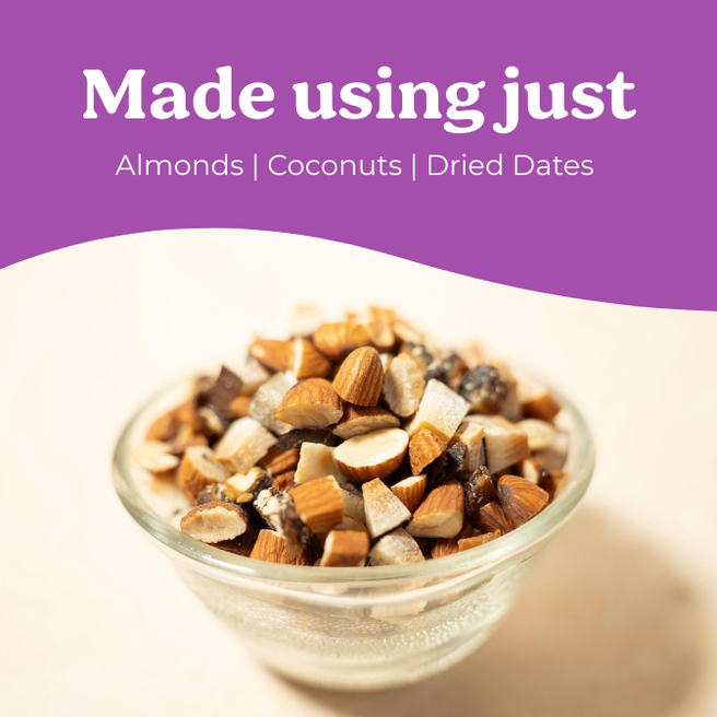 A wholesome blend of almonds, coconut, and dates for a naturally sweet, nutty, and energy-boosting treat